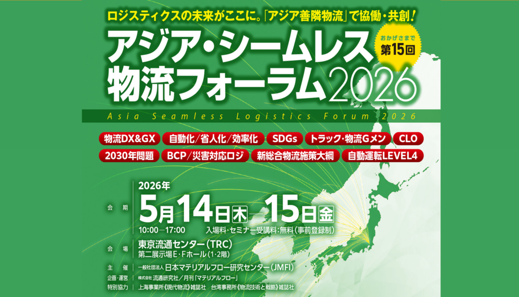 2026年50月14日(木)~15日(金)に開催される「」アジア・シームレス物流フォーラム2026」へ出展いたします。